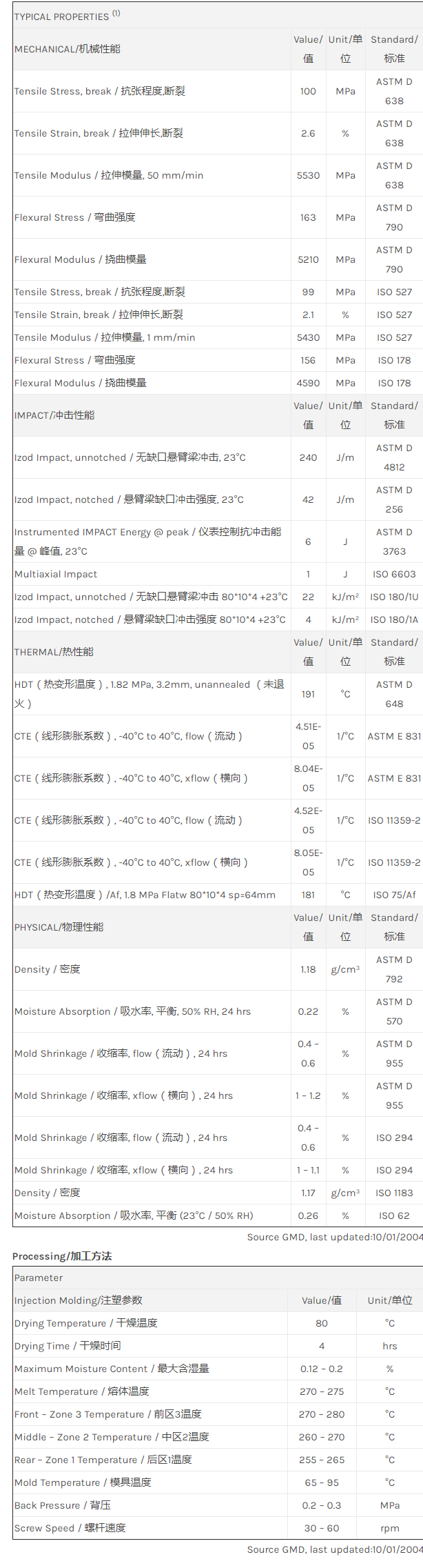应用范围: 产品描述 LNP Thermocomp IF003物性表 LNP THERMOCOMP IF003是一种聚酰胺612(尼龙6/12)产品,含有的填充物为15%玻璃纤维增强材料,可以通过注射成型进行加工。 LNP THERMOCOMP* IF003 is a compound based on Nylon 6/12 resin containing Glass Fiber. Proper