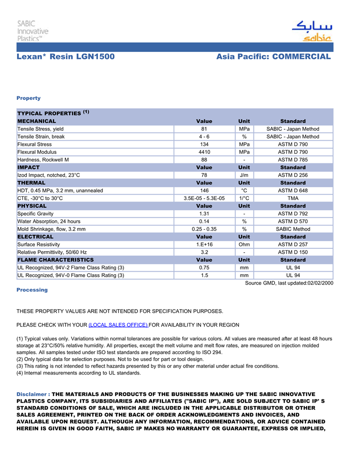 应用范围:产品描述LEXAN PC LGN1500物性表相关色号:LGN1500-131、LGN1500-739