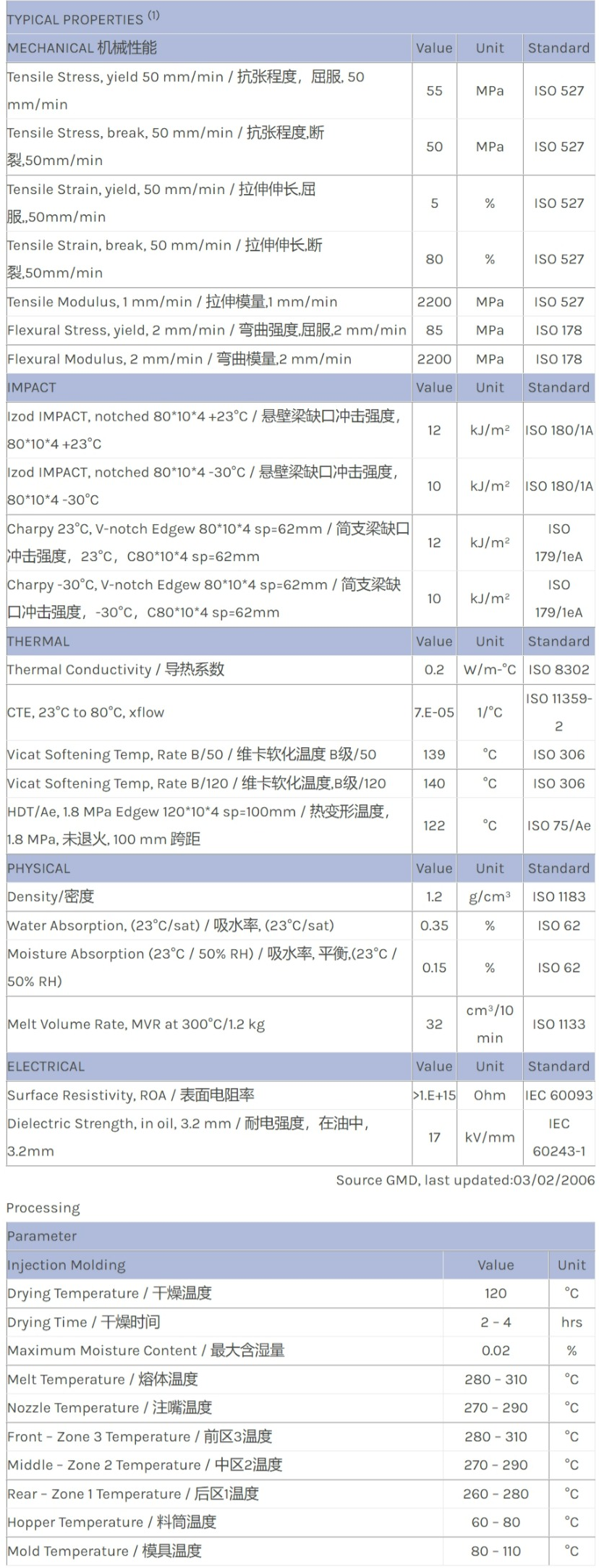 应用范围:产品描述LEXAN PC LR110物性表LEXAN LR110 is a opaque high flow grade. The product is designed to utilize selected recycle materials from our plants.