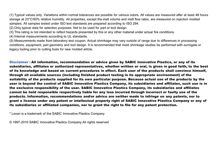 LEXAN PC LR140物性表