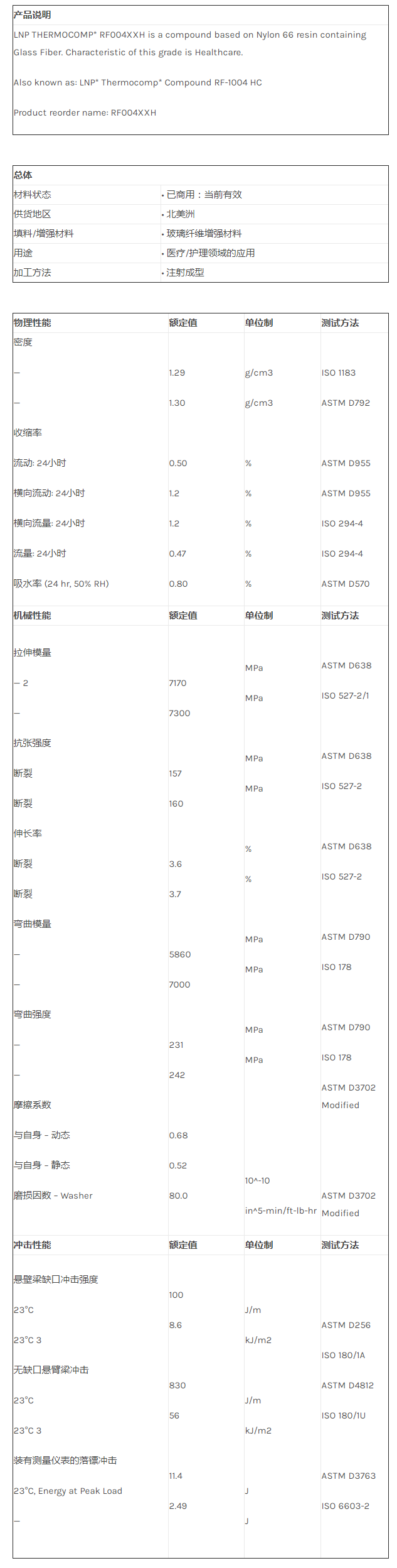 应用范围:产品描述LNP THERMOCOMP RF004XXH物性表