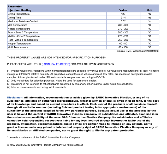 LEXAN PC ML3485物性表