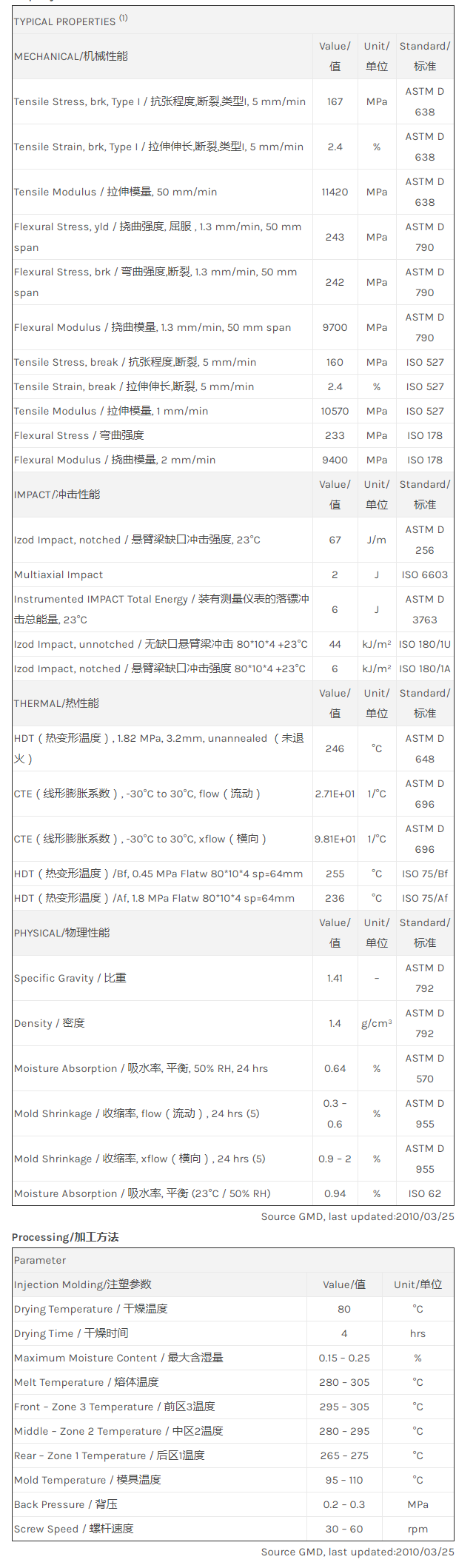 应用范围: 产品描述 LNP Thermocomp RF006物性表 LNP THERMOCOMP RF006是一种聚酰胺66(尼龙66)产品,含有的填充物为30%玻璃纤维增强材料,可以通过注射成型进行加工。 相关颜色色号:RF006-GYMDNAT、RF006-NC LNP* Thermocomp* RF006 is a compound based on Nylon 66 resin cont