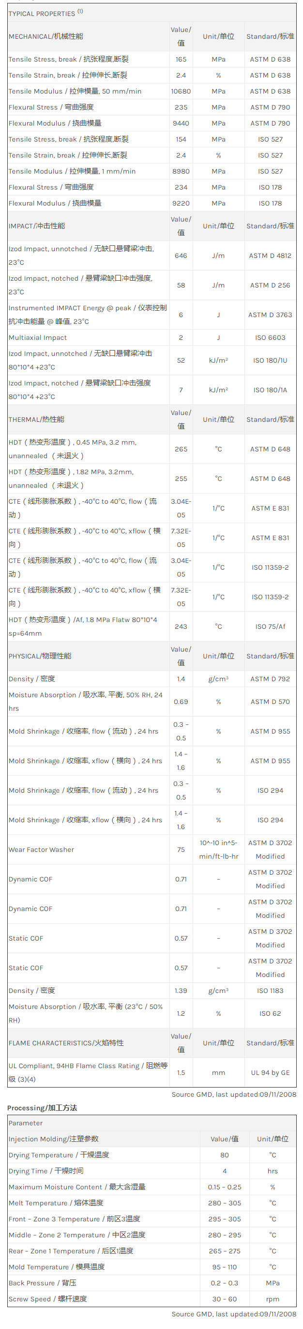 应用范围: 产品描述 LNP Thermocomp RF006XXZ物性表 LNP THERMOCOMP RF006XXZ是一种聚酰胺66(尼龙66)材料,含有的填充物为玻璃纤维增强材料。 LNP THERMOCOMP* RF006XXZ is a compound based on Nylon 66 resin containing Glass Fiber.This product is also