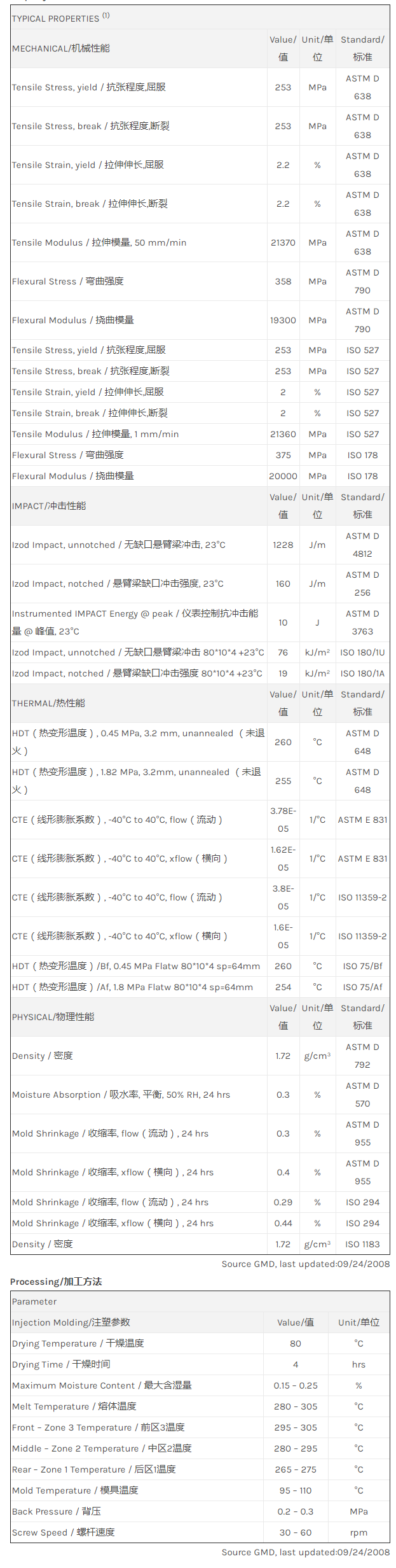 应用范围: 产品描述 LNP Thermocomp RF00CSXS物性表 “NP? THERMOCOMP RF00CSXS是一种聚酰胺66(尼龙66)材料,含有的填充物为玻璃纤维增强材料,加工方式为:注射成型。 LNP THERMOCOMP RF00CSXS的主要特性为:热稳定剂。” LNP* Thermocomp* RF00CSXS is a compound based on Nylon 6