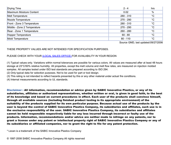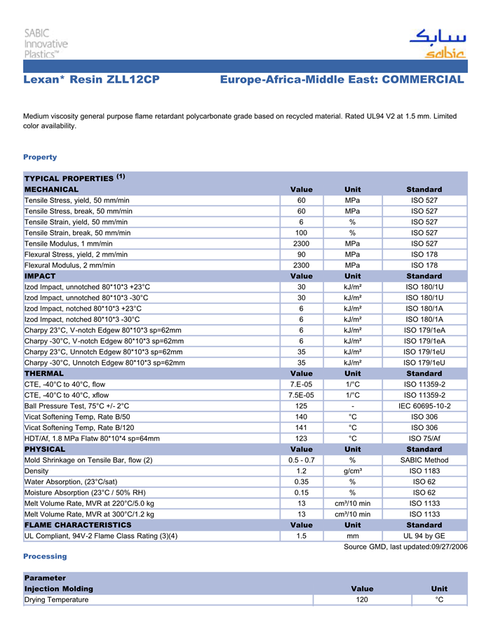 LEXAN PC ZLL12CP物性表