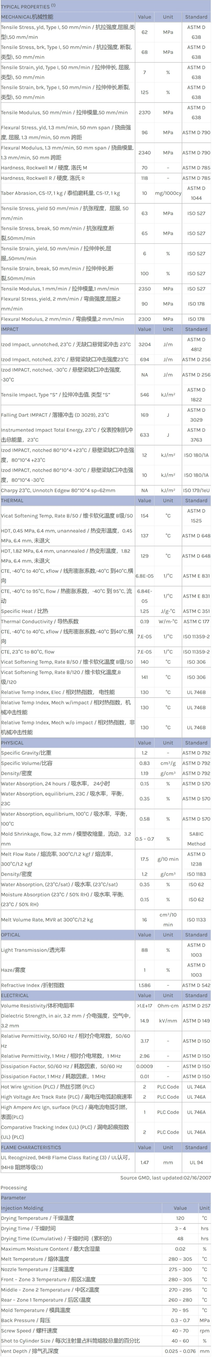 应用范围:产品描述LEXAN PC HP2JP物性表Med/high flow polycarbonate. For medical devices and pharmaceutical applications. Healthcare management of change, biocompatible (ISO10993 or USP Class VI). EtO and steam steriliz