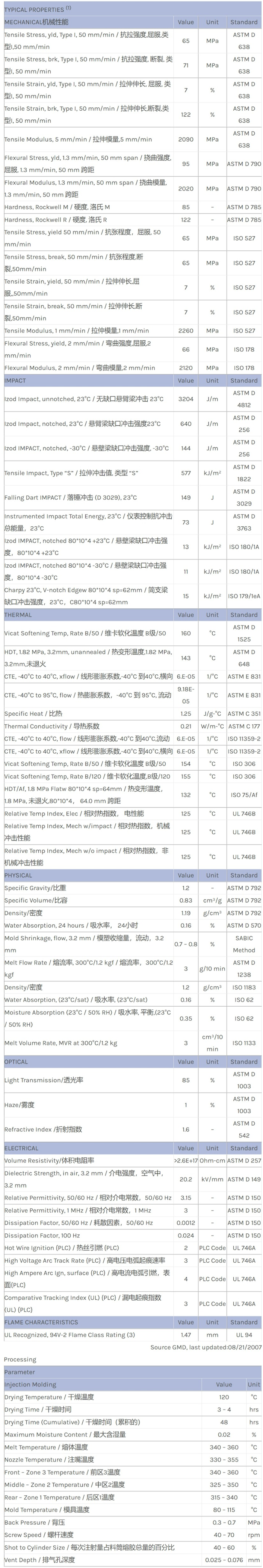 LEXAN PC HPH4504物性表