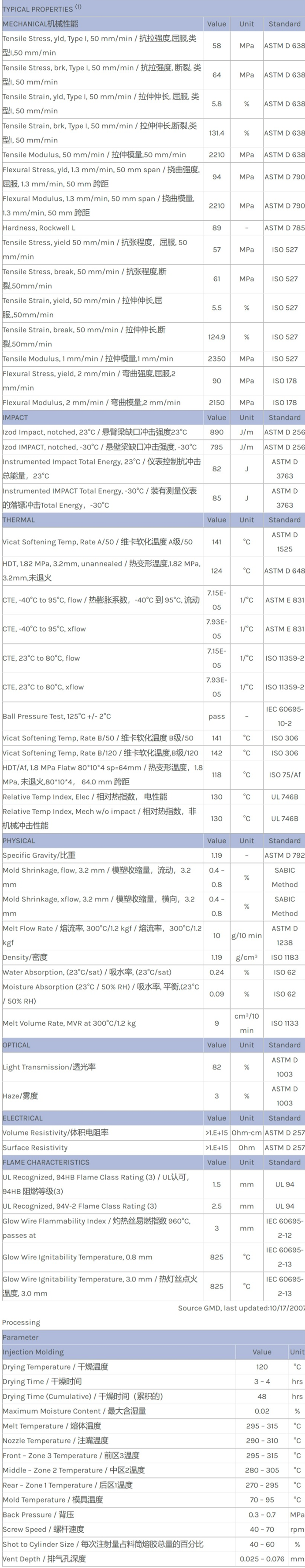 Lexan HPX4REU resin是一种聚碳酸酯(PC)材料。加工方式为:注射成型。