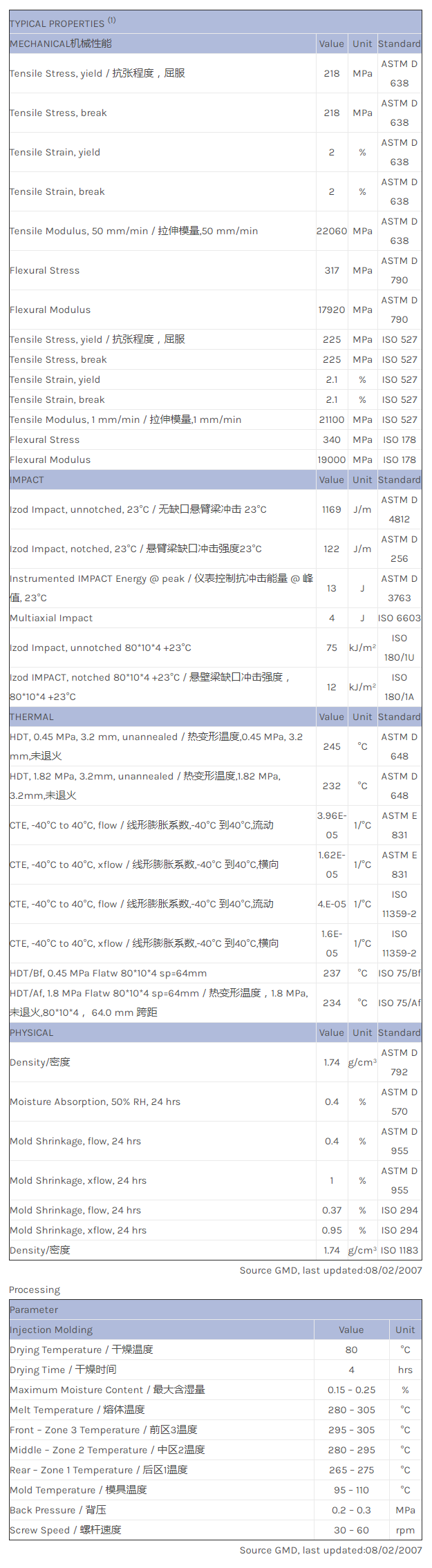 应用范围: 产品描述 LNP THERMOCOMP RX06423物性表 LNP* Thermocomp* RX06423 is a compound based on Nylon 66 resin containing Glass Fiber. Added features of this material include: Easy Molding, Heat Stabilized, UV Sta