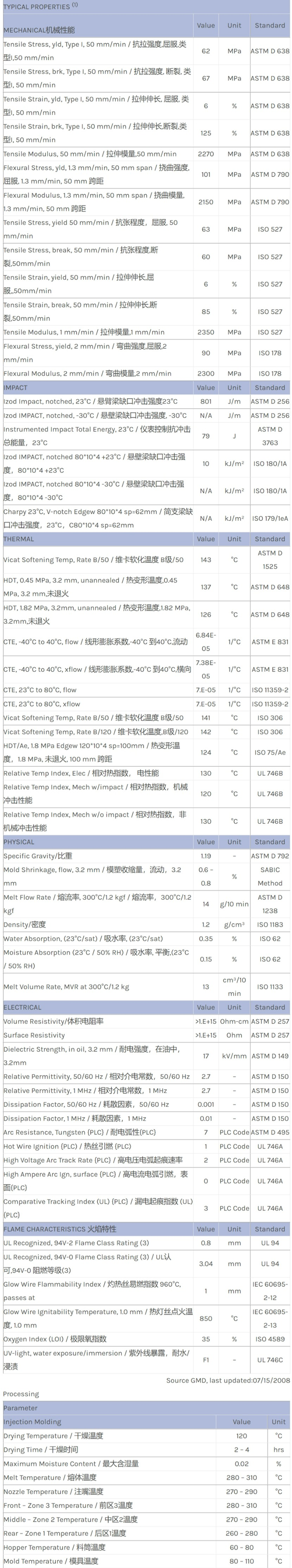 应用范围:产品描述LEXAN PC 929AU物性表Lexan* 929AU Polycarbonate (PC) resin is a non-filled, injection moldable grade. This halogen-free flame retardant PC has an UL-94 V0 rating and Melt Flow Rate / 熔流率 (MFR) of 14.