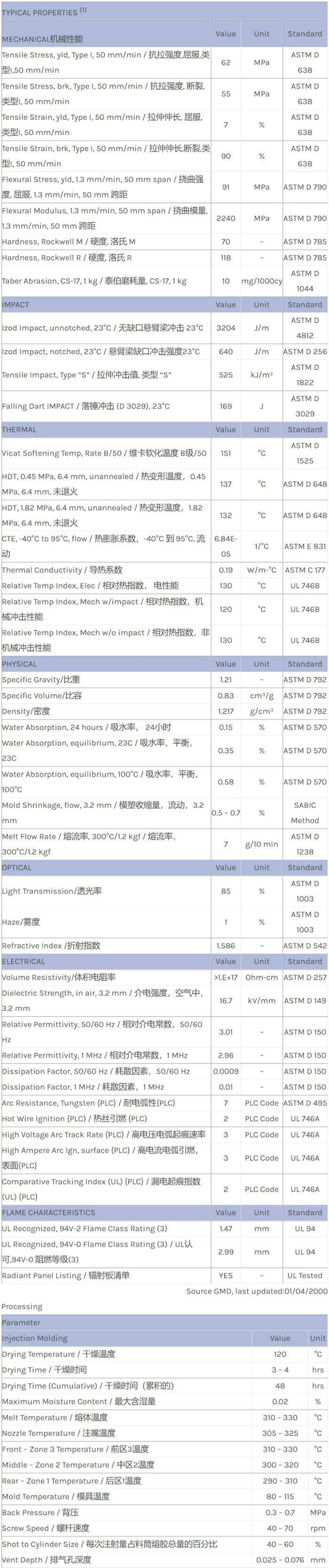 应用范围:产品描述LEXAN PC 950A物性表Transparent, clear and colors, high viscosity, flame retardant with exceptional surface.相关色号:950A-116、950A-21127、950A-GY8A161、950A-YW5D014、950A-WH6D031、950A-WH6G098