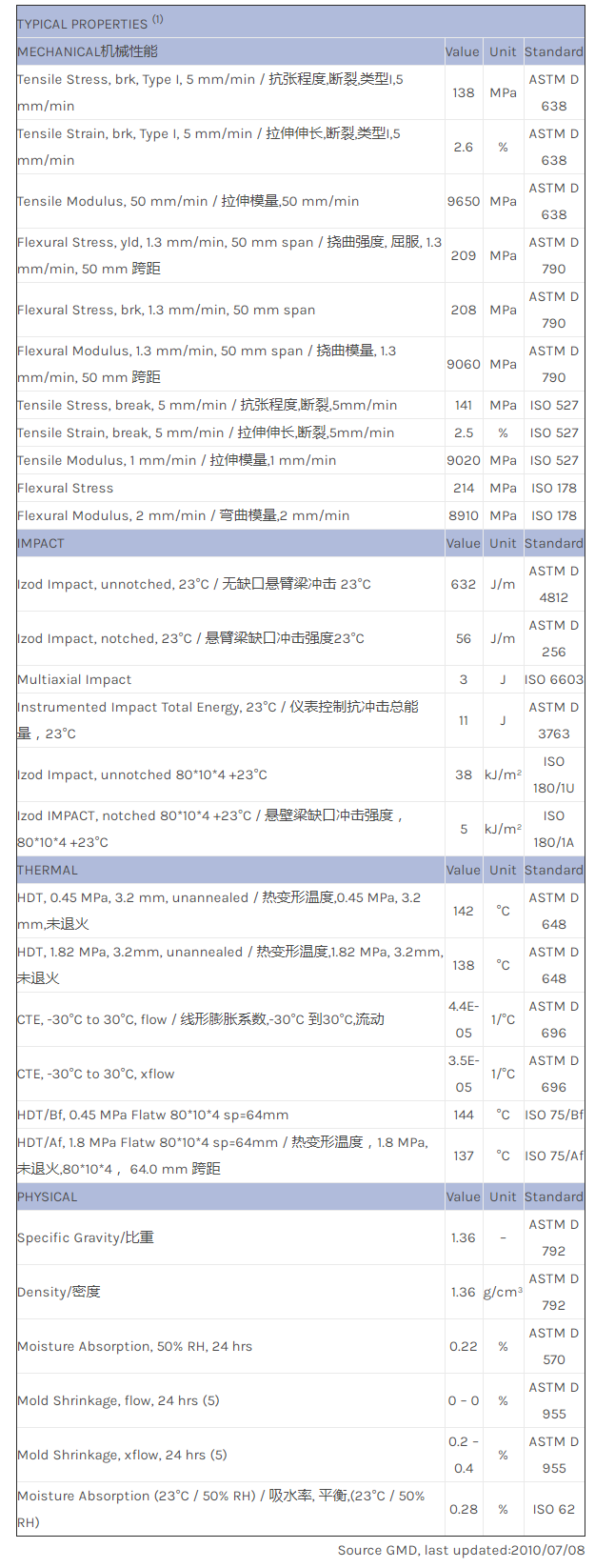 应用范围: 产品描述 LNP THERMOCOMP XF006S物性表 LNP THERMOCOMP XF006S是一种聚酰胺产品,含有的填充物为30%玻璃纤维增强材料,可以通过注射成型进行加工。主要特性为:热稳定剂。