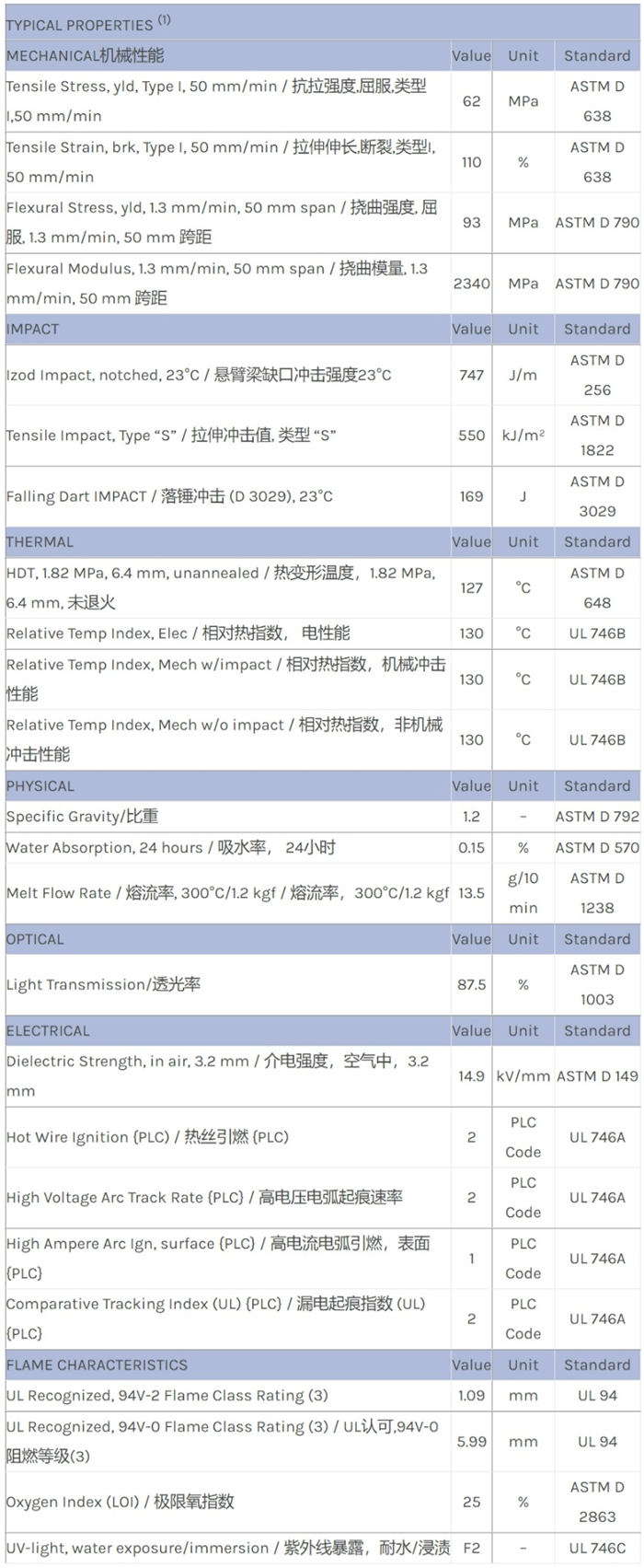LEXAN PC ML4189物性表