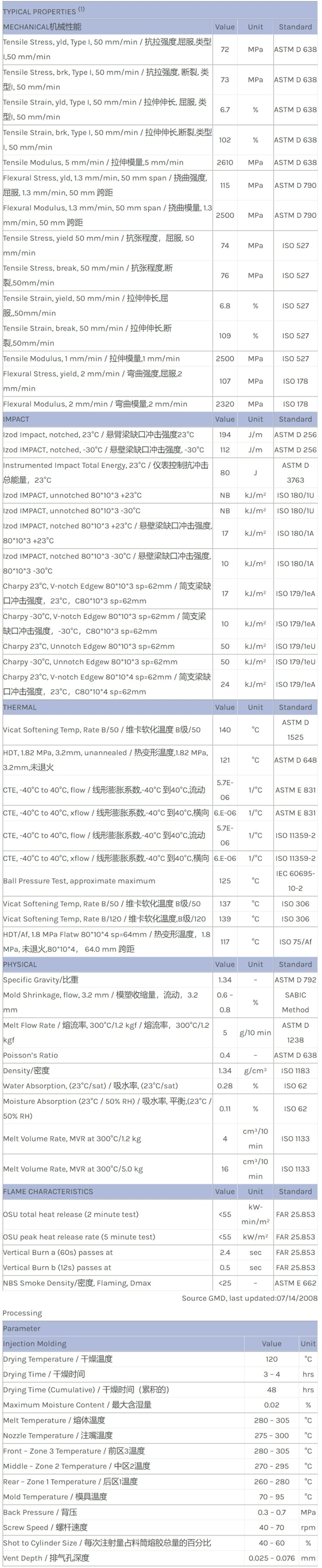 LEXAN PC SD9705物性表
