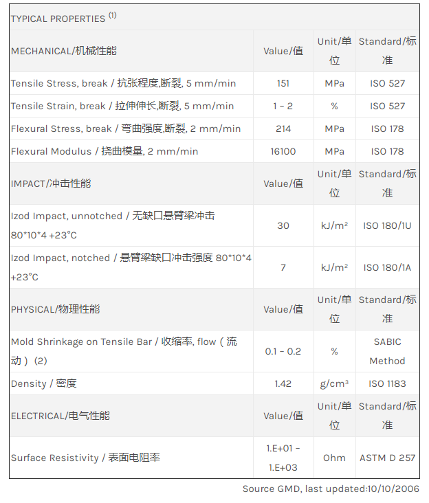 应用范围: 产品描述 LNP Thermocomp WC006物性表 LNP THERMOCOMP WC006是一种热塑性聚酯材料,含有的填充物为碳纤维增强材料,加工方式为:注射成型。 LNP* Thermocomp* WC006 is a compound based on Polybutylene Terephalate resin containing Carbon Fiber. Prope