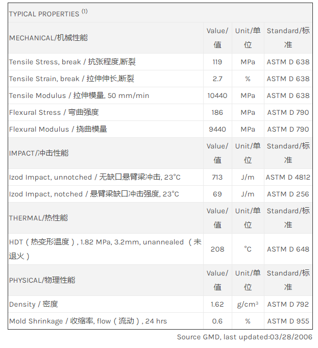 应用范围: 产品描述 LNP Thermocomp WF006H物性表 LNP THERMOCOMP WF006H是一种聚丁烯对苯二甲酸酯(PBT)材料,含有的填充物为玻璃纤维增强材料。 LNP* Thermocomp* WF006H is a compound based on Polybutylene Terephalate resin containing Glass Fiber. Prop