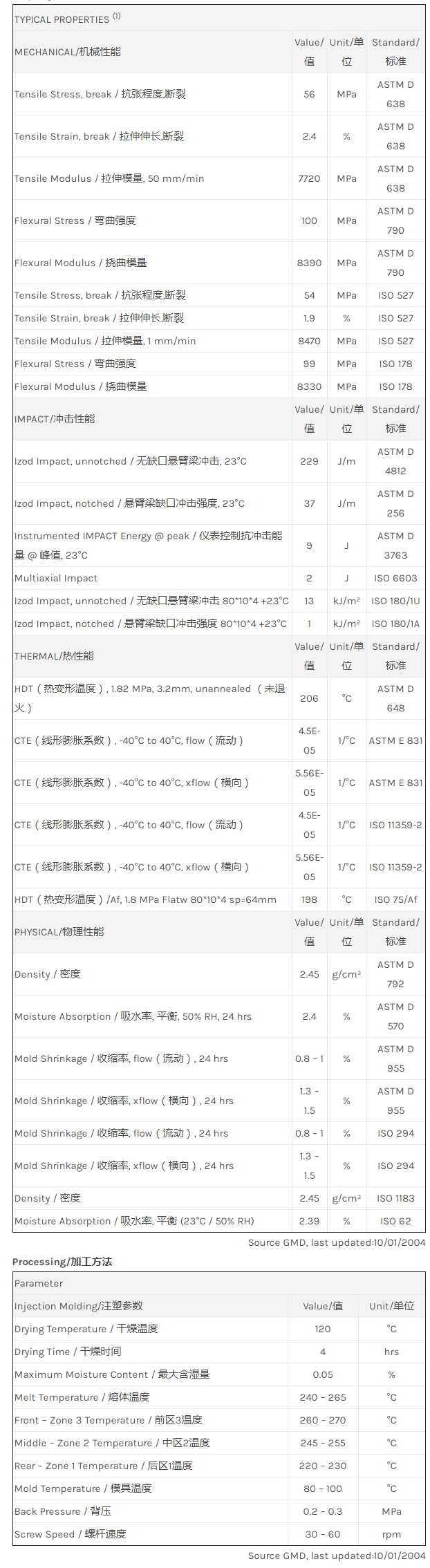 应用范围: 产品描述 LNP Thermocomp WH0245A物性表 LNP THERMOCOMP WH0245A是一种聚丁烯对苯二甲酸酯(PBT)材料,加工方式为:注射成型。 LNP THERMOCOMP* WH0245A is a compound based on Polybutylene Terephalate resin. Added features of this material