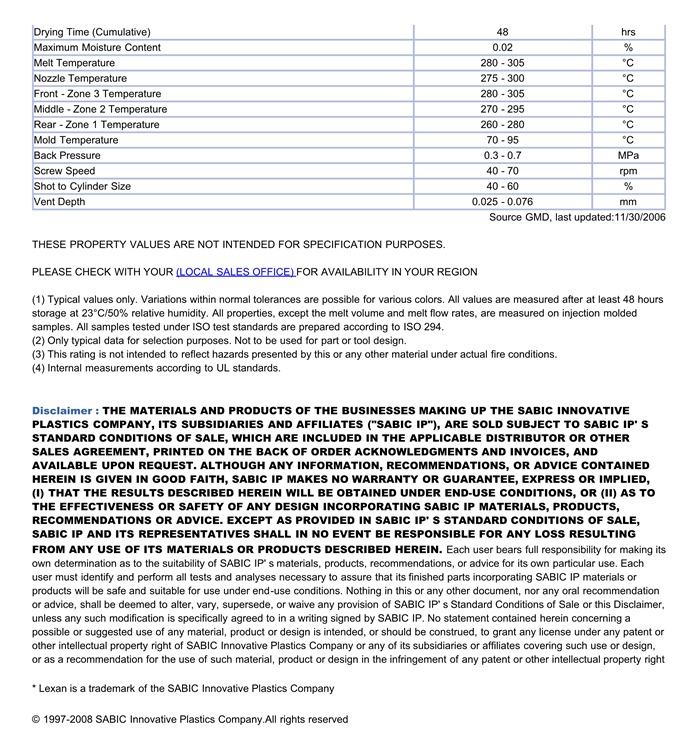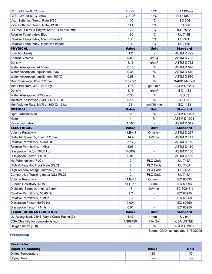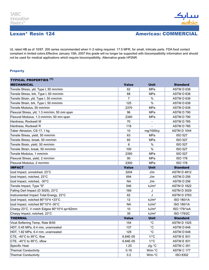 LEXAN PC 124物性表