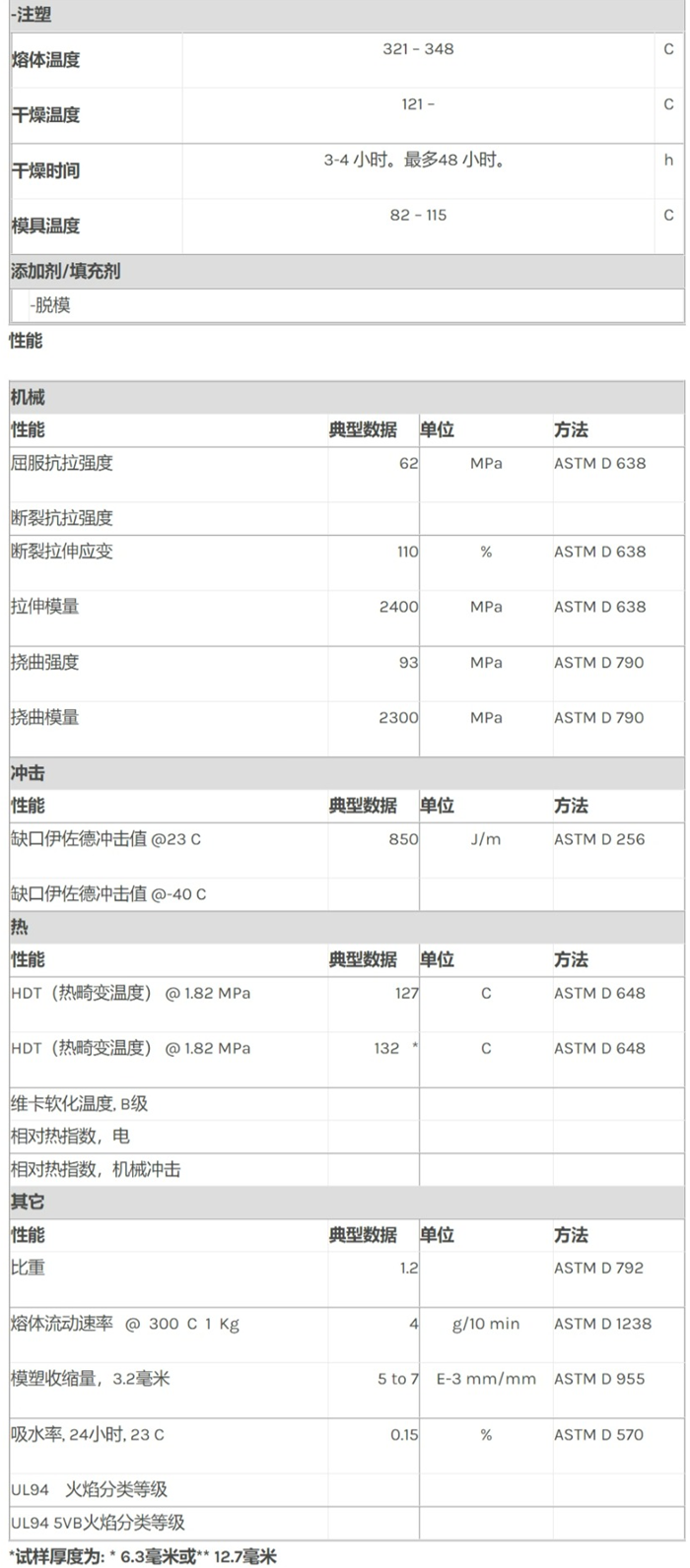应用范围:产品描述Lexan PC 1500R物性表符合FDA规范, 低流动性、脱模牌号聚碳酸酯加工
