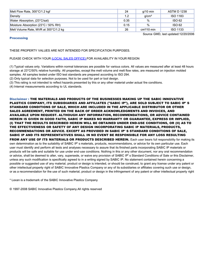 LEXAN PC HF2140R物性表