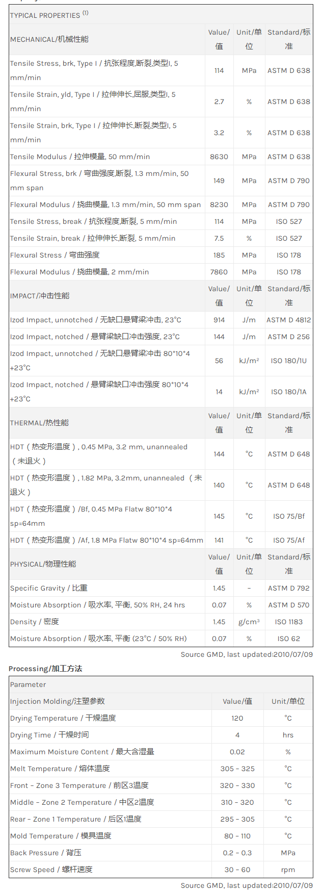 应用范围: 产品描述 LNP Thermocomp DF006LXN物性表 “LNP THERMOCOMP DF006LXN是一种聚碳酸酯(PC)产品,含有的填充物为30%玻璃纤维增强材料,可以通过注射成型进行加工。 典型应用领域为:水管/管道/饮用水” LNP* Thermocomp* DF006LXN is a compound based on Polycarbonate resin con