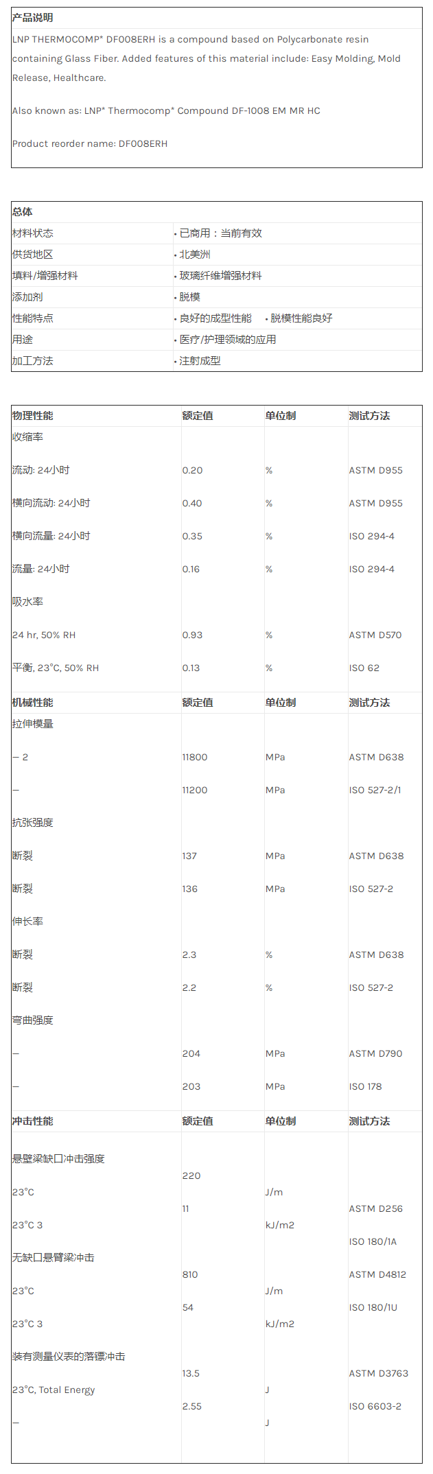 应用范围: 产品描述 LNP THERMOCOMP DF008ERH物性表