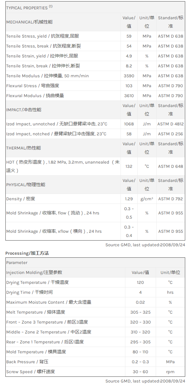 应用范围: 产品描述 LNP Thermocomp DX05475物性表 “LNP THERMOCOMP DX05475是一种聚碳酸酯(PC)产品,含有的填充物为玻璃纤维增强材料,可以通过注射成型进行加工。 主要特性为:flame retardant。” LNP* Thermocomp* DFA113 is a compound based on Polycarbonate resin conta