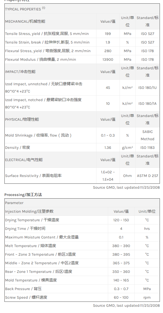 应用范围: 产品描述 LNP Thermocomp LC004XXP物性表 “LNP THERMOCOMP LC004XXP是一种聚醚醚酮(PEEK)材料,含有的填充物为碳纤维增强材料,加工方式为:注射成型。 LNP THERMOCOMP LC004XXP的主要特性有: 通过ROHS认证” LNP* THERMOCOMP* LC004XXP is a compound based on Poly