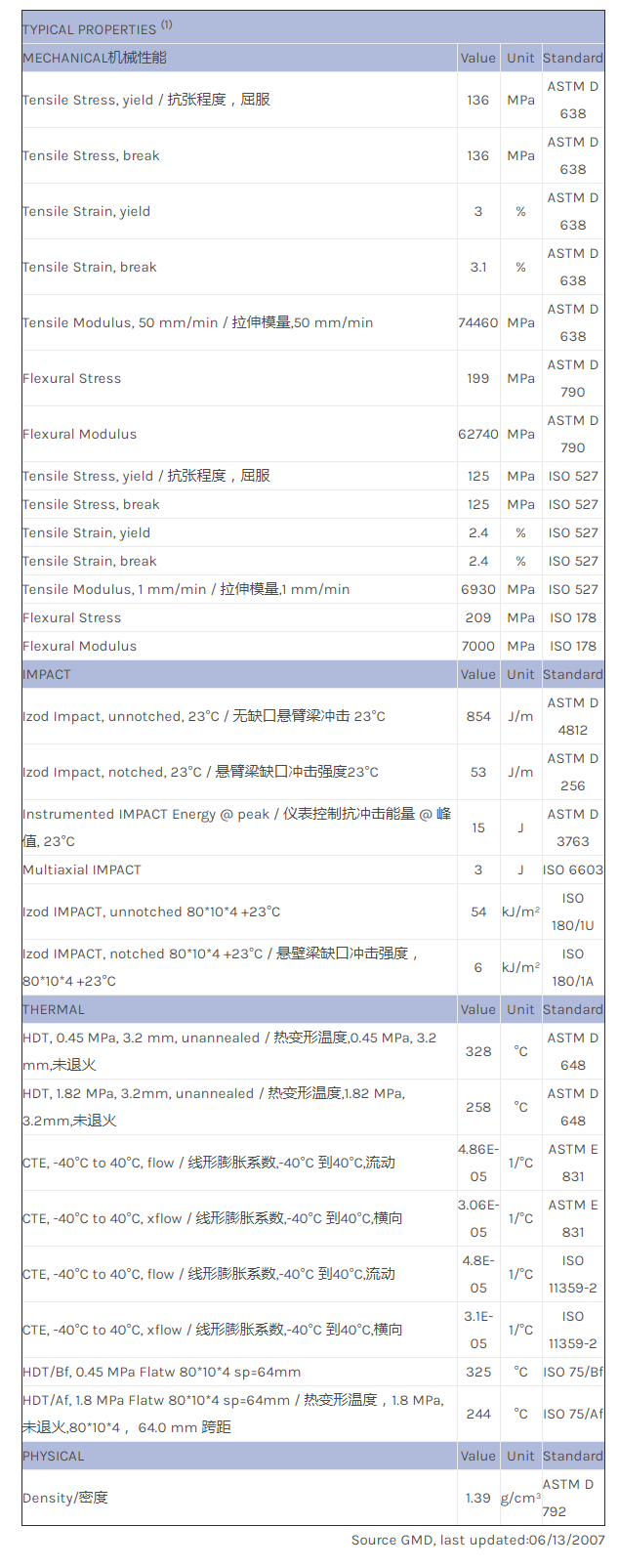 应用范围: 产品描述 LNP THERMOCOMP LF003E物性表 LNP* Thermocomp* LF003E is a compound based on Polyetheretherketone resin containing Glass Fiber.