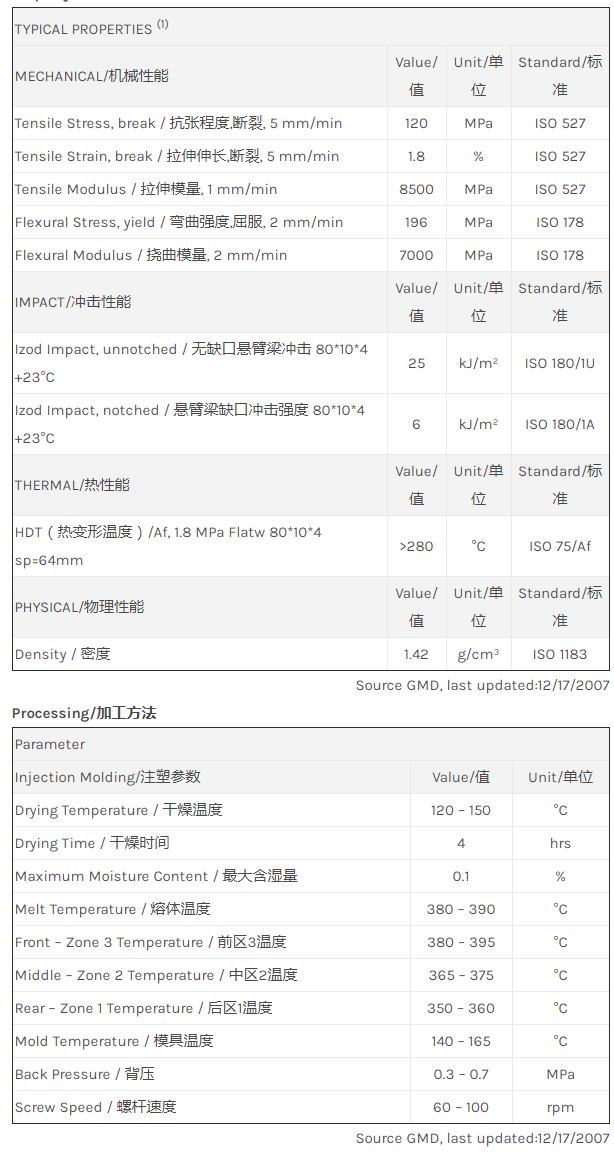 应用范围: 产品描述 LNP Thermocomp LF004E物性表 “LNP THERMOCOMP LF004E是一种聚醚醚酮(PEEK)材料,含有的填充物为玻璃纤维增强材料,加工方式为:注射成型。 LNP THERMOCOMP LF004E的主要特性为:加工性能良好。” LNP* THERMOCOMP* LF004E is a compound based on Polyetherether