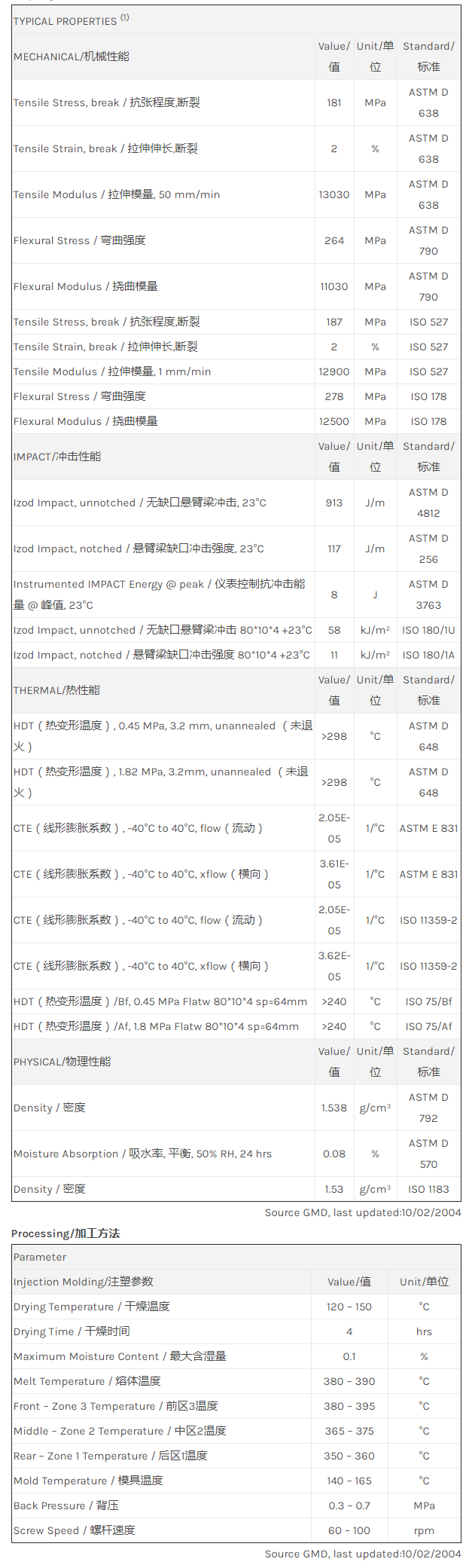 应用范围: 产品描述 LNP Thermocomp LF006E物性表 “LNP THERMOCOMP LF006E是一种聚醚醚酮(PEEK)产品,含有的填充物为30%玻璃纤维增强材料,可以通过注射成型进行加工。 主要特性为:加工性能良好。” LNP THERMOCOMP* LF006E is a compound based on Polyetheretherketone resin conta