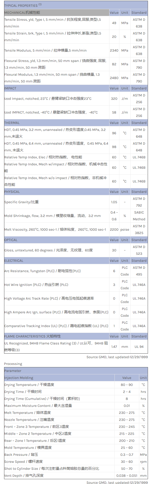 CYCOLAC ABS GDM3500物性表