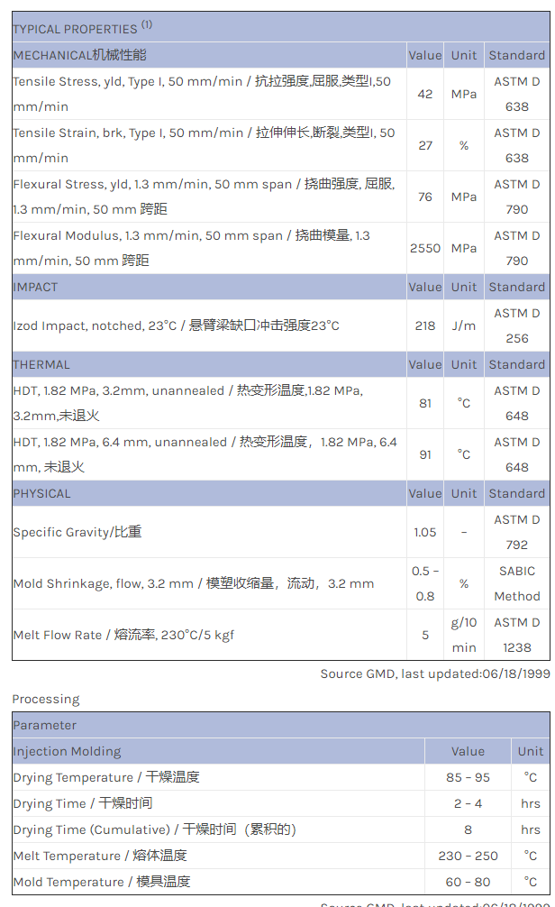 应用范围:产品描述CYCOLAC ABS GPT5500H物性表Medium heat grade of ABS used for interior automotive components.