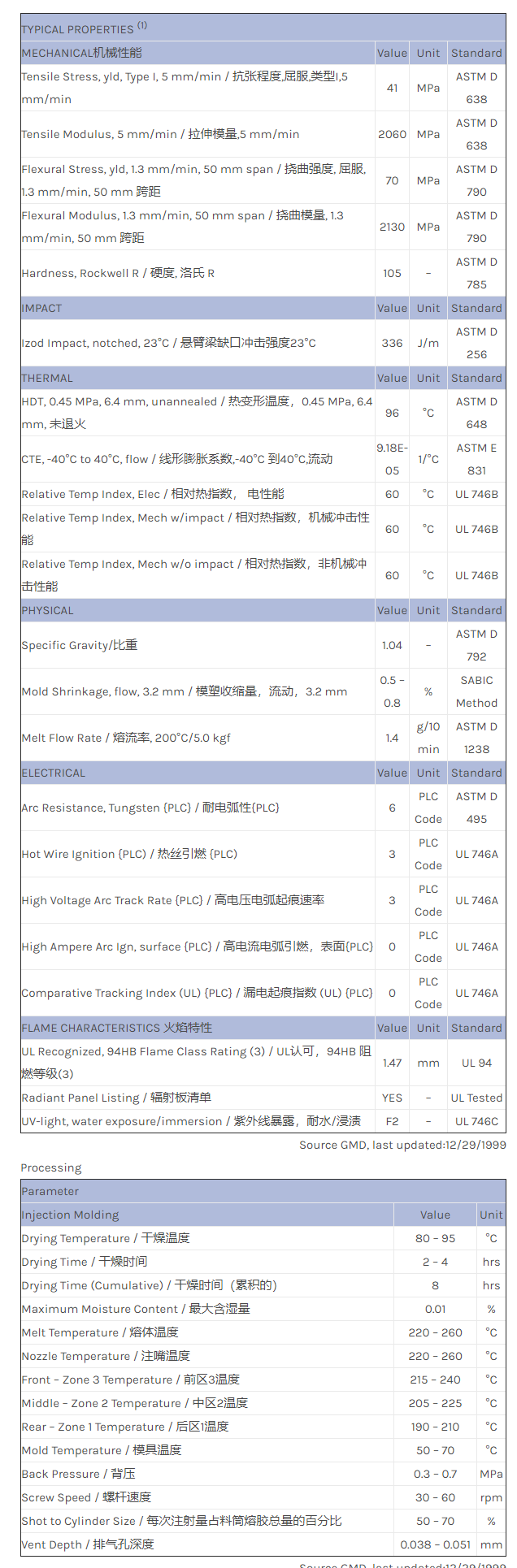 应用范围:产品描述CYCOLAC ABS HIM物性表ABS. Automotive.