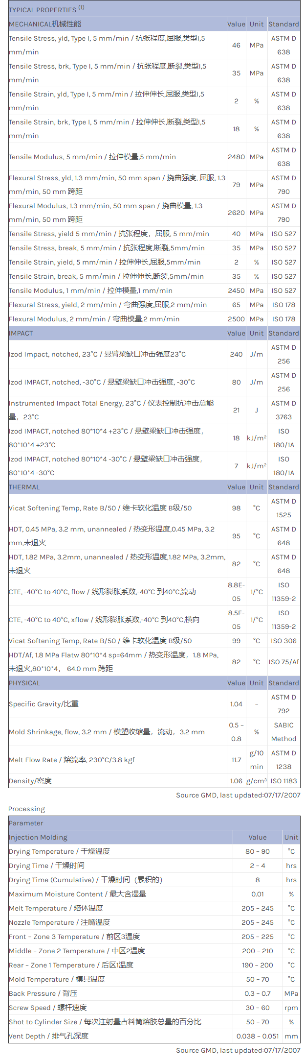 CYCOLAC ABS HMG94MD物性表