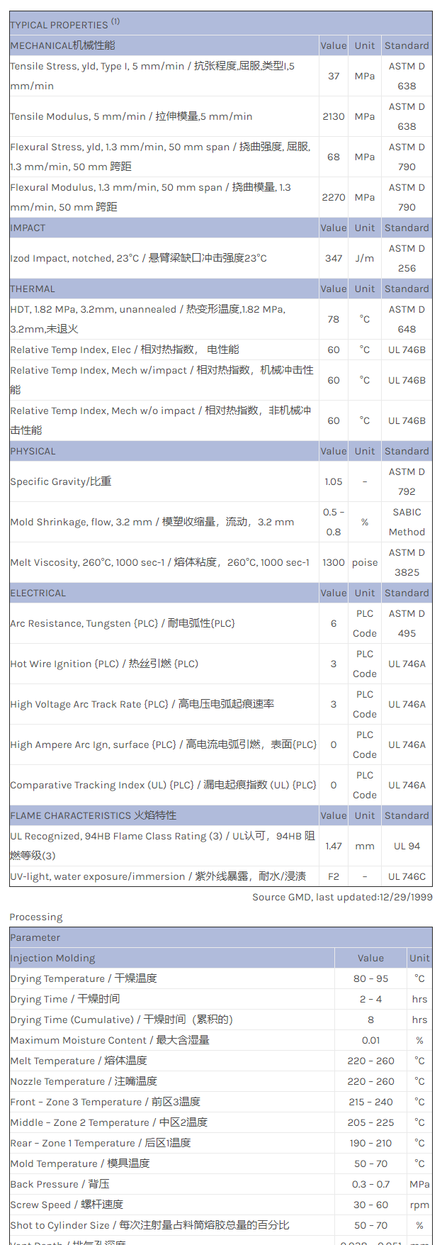 CYCOLAC ABS HMM物性表