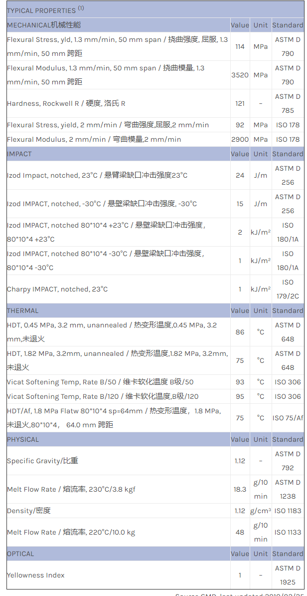 应用范围:产品描述CYCOLAC ABS INP222物性表Bulk MMASAN. Provides an economical option for achieving greater melt strength in polymers.