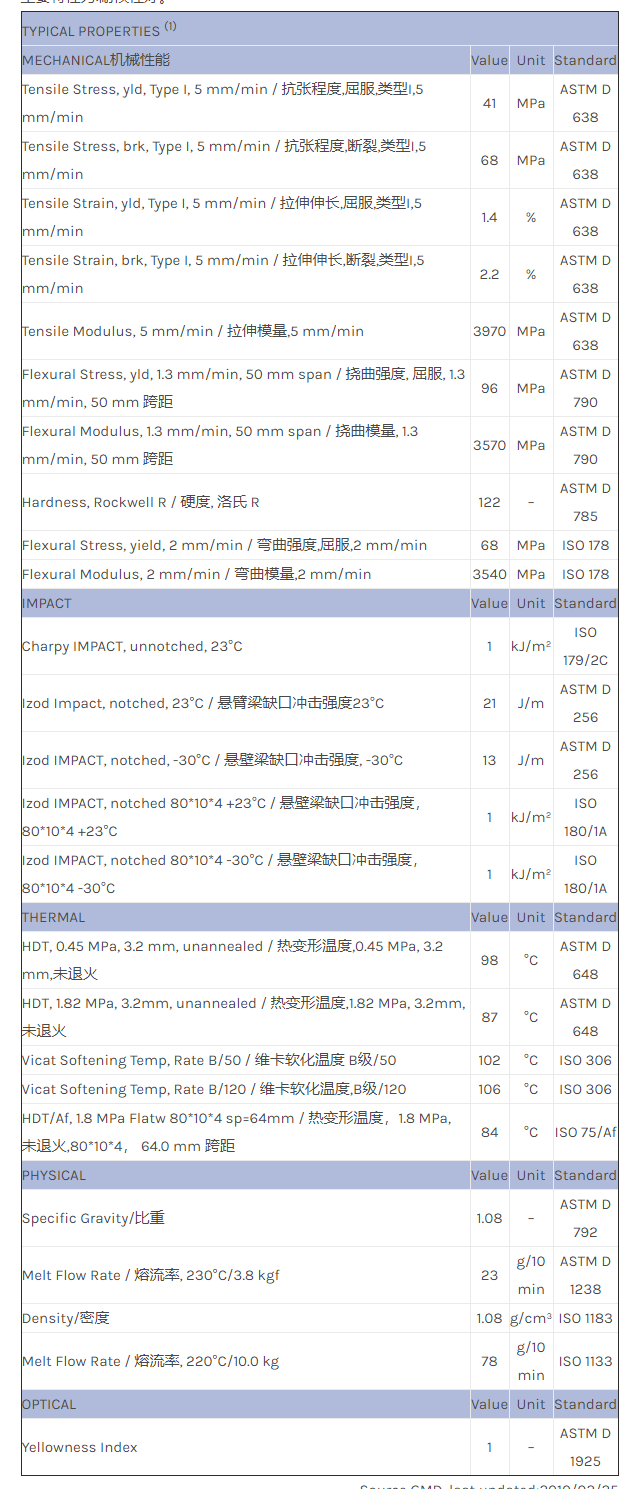 应用范围:产品描述CYCOLAC ABS INP576物性表Cycolac INP576 是一种丙烯腈丁二烯苯乙烯+SAN(ABS+SAN)产品。典型应用领域为:添加剂/色母粒。主要特性为:耐候性好。