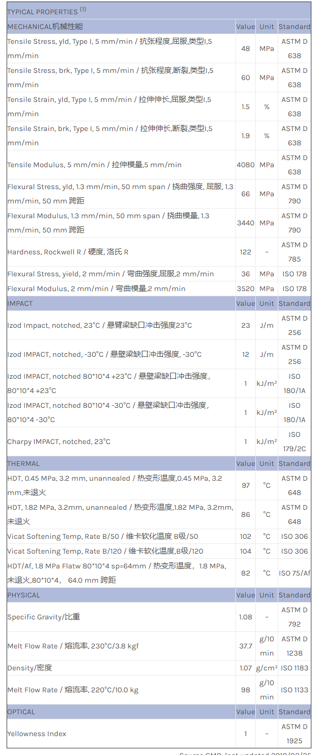 CYCOLAC ABS INP581物性表
