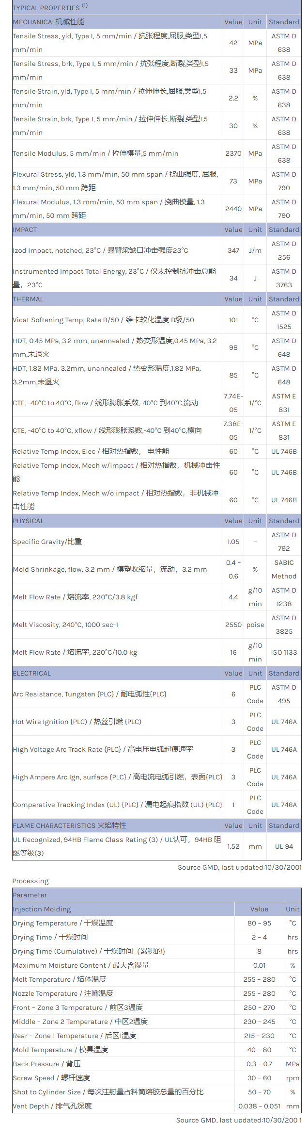 CYCOLAC ABS MG37EP物性表