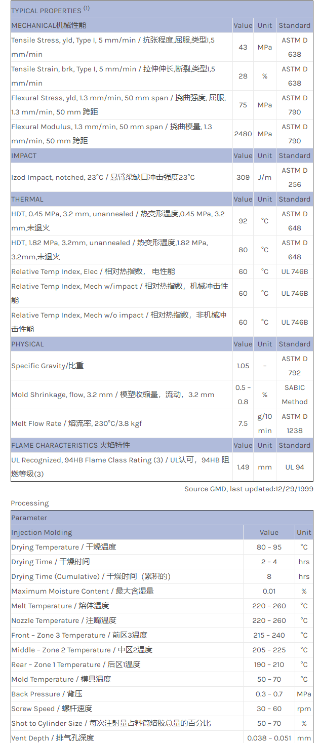 CYCOLAC ABS REC550物性表