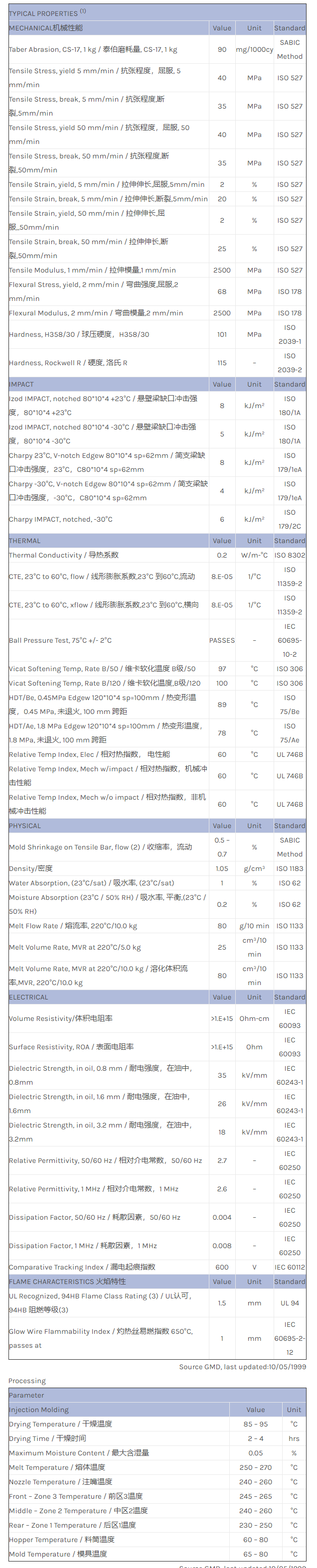 应用范围:产品描述CYCOLAC ABS S703S物性表CYCOLAC S703S is a super high flow ABS developed for thin wall injection/compression moulding applications.