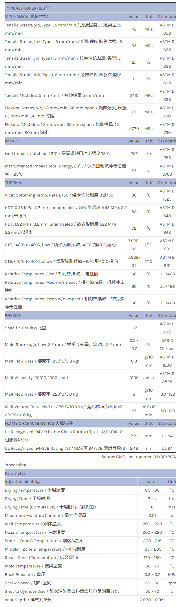应用范围:产品描述CYCOLAC ABS FR23物性表Cycolac FR23 是一种丙烯腈丁二烯苯乙烯(ABS)材料。Cycolac FR23 的主要特性有:阻燃/额定火焰Flame Retardant加工性能良好良好的韧性相关色号:FR23-WH9E188、FR23-54242、FR23-GY6D751、FR23-NA1000