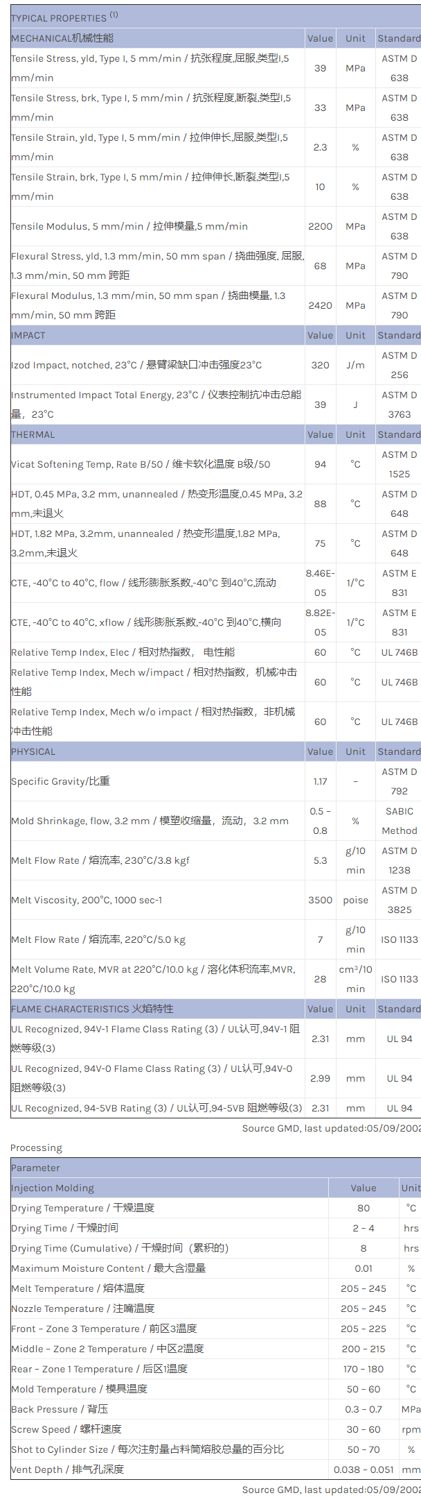 应用范围:产品描述CYCOLAC ABS FR30U物性表Flame retardant ABS. Good indoor UV properties. Excellent moldability with no bloom. V-1/V-0/5VB rated.相关色号:FR30U-NA1000