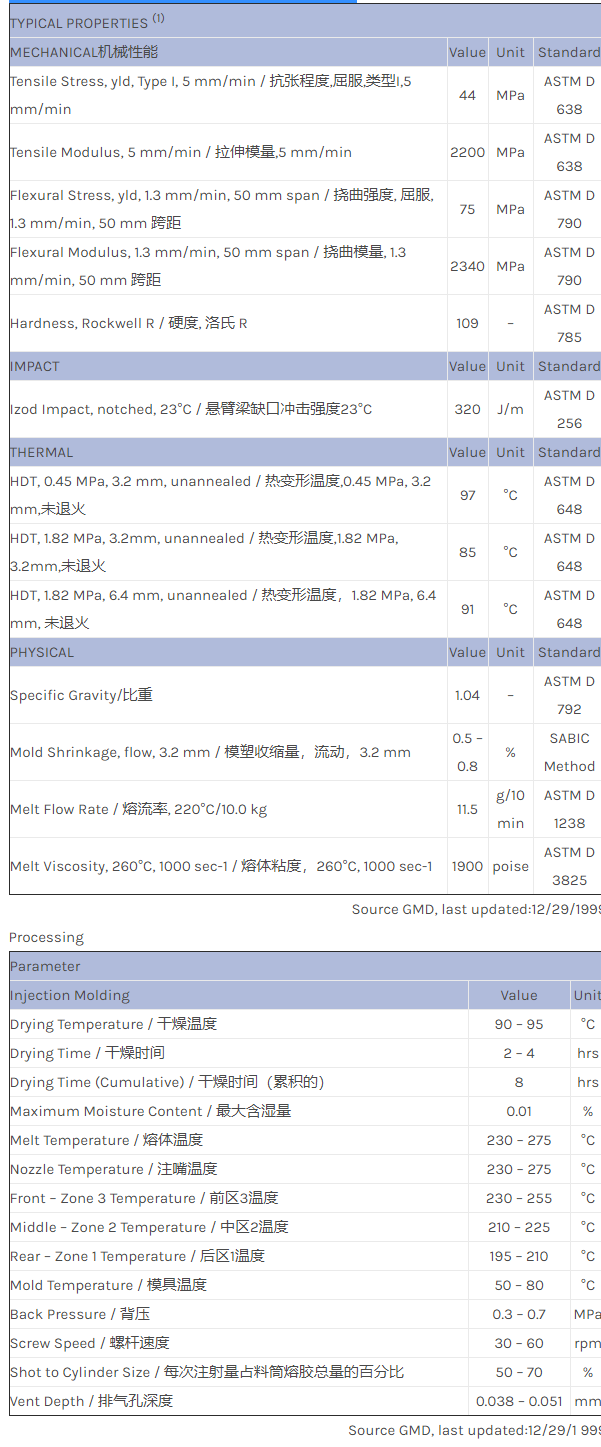应用范围:产品描述CYCOLAC ABS GHT4400物性表GHT4400的主要用途:汽车主要特点:高耐热性、 高抗冲击性、优良的可加工性