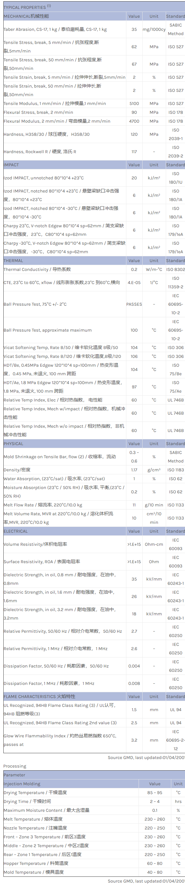 应用范围:产品描述CYCOLAC ABS GRM20物性表CYCOLAC GRM20 is a 17% glass reinforced injection moulding grade of ABS. It exhibits high rigidity and excellent dimensional stability combined with medium/high heat performanc