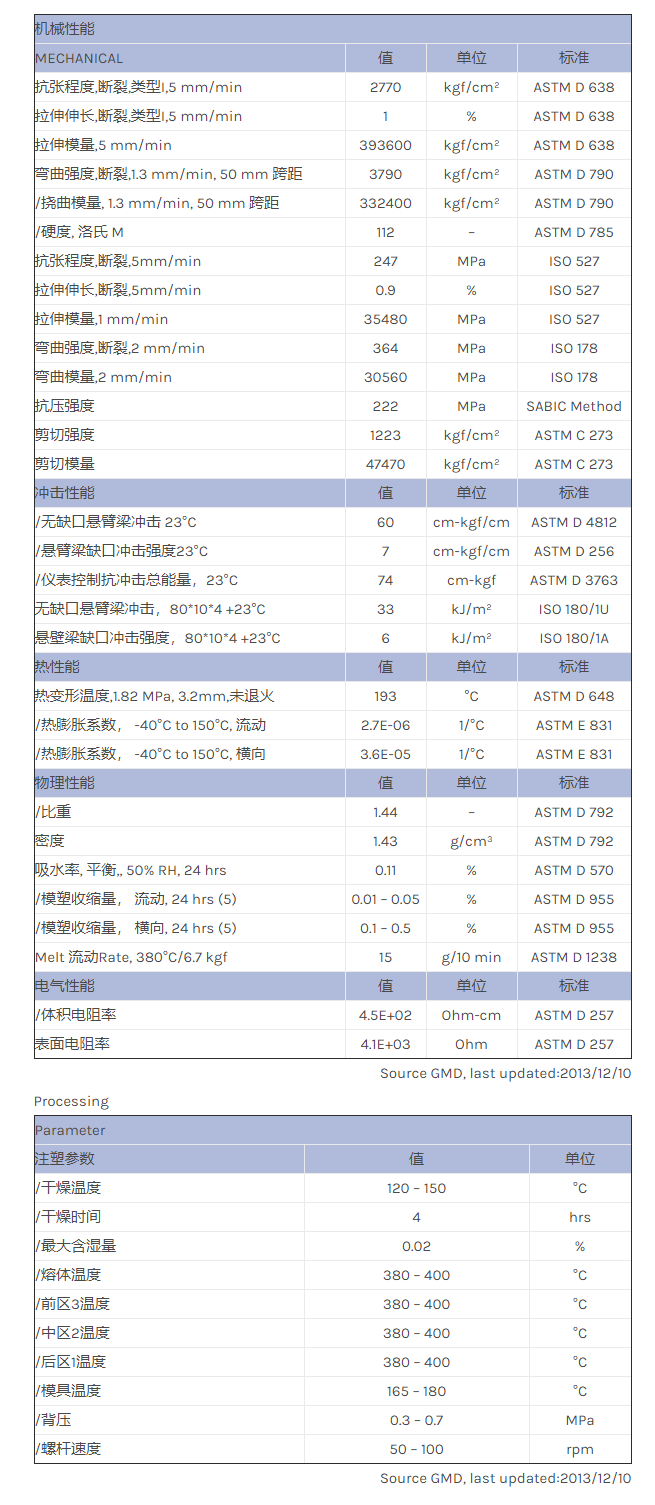 应用范围: 产品描述 LNP THERMOCOMP EC008PXQ物性表 40%碳纤维增强材料,LNP THERMOCOMP EC008PXQ is a compound based on Polyetherimide containing 40% Carbon FIber. Added features include: Electrically Conductive, Exceptional P
