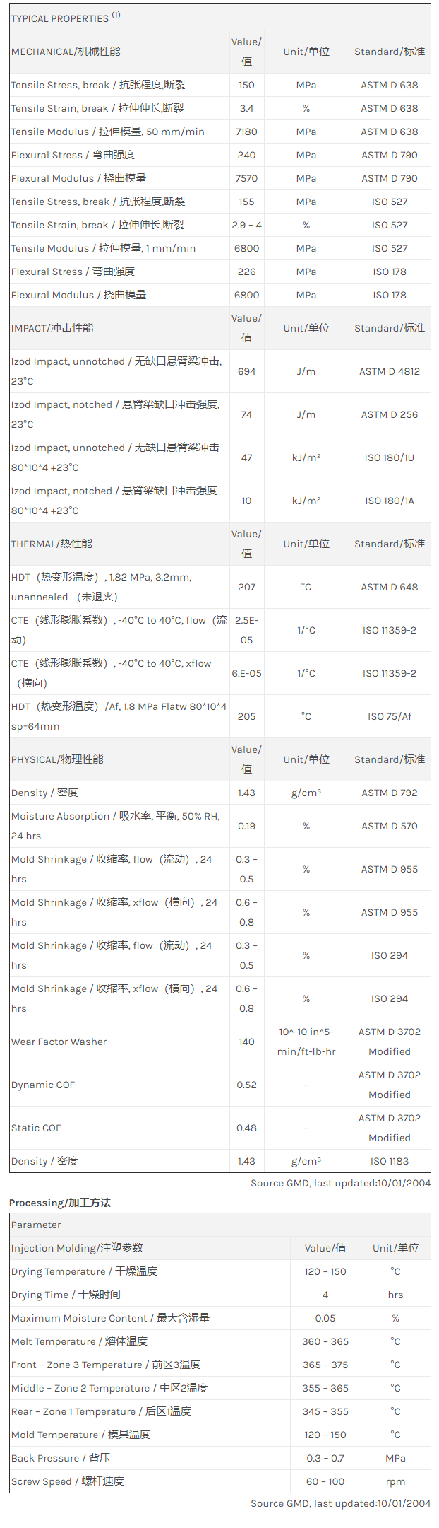 应用范围: 产品描述 LNP Thermocomp EF004物性表 LNP THERMOCOMP EF004是一种聚醚酰亚胺(PEI)产品,含有的填充物为20%玻璃纤维增强材料,可以通过注射成型进行加工。 LNP* Thermocomp* EF004 is a compound based on Polyetherimide resin containing Glass Fiber. Prope