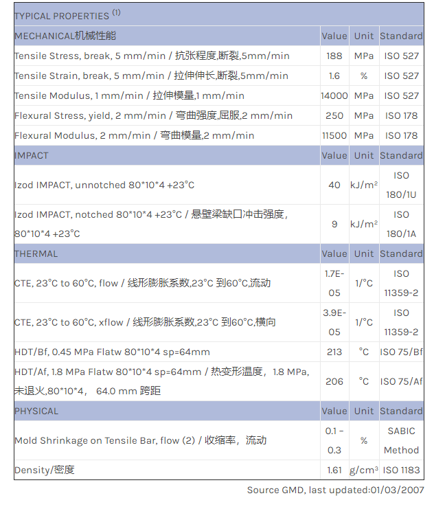 应用范围: 产品描述 LNP THERMOCOMP EF008EXP物性表 LNP* Thermocomp* EF008EXP is a compound based on Polyetherimide resin containing Glass Fiber. Added features of this material include: Easy Molding, Mold Release.